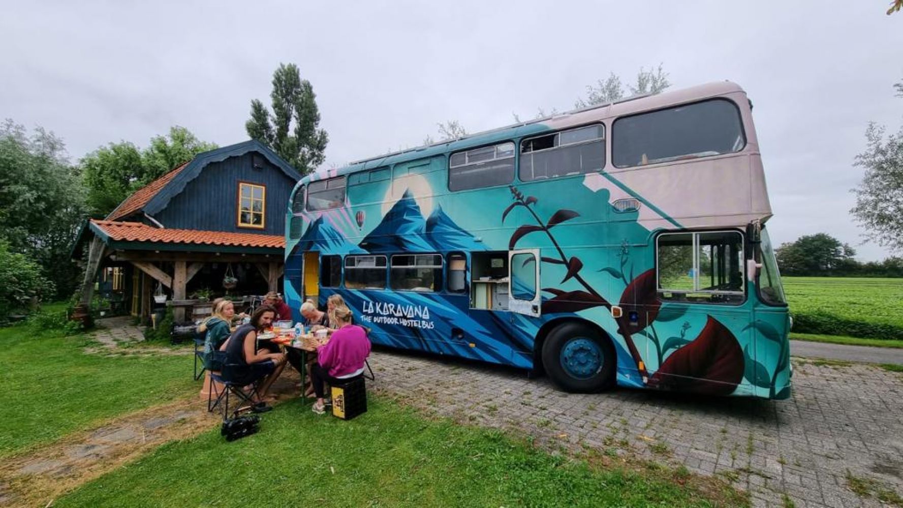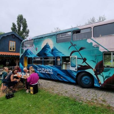 La Karavana is een 45 jaar oude engelse dubbeldekkerbus omgebouwd tot een comfortabel hostel op wielen, waarmee onvergetelijke avonturen een garantie zijn! Het is een bus voorzien van alle gemakken: 9 bedden, een warme douche, een toilet, een lounge, keuken en zelfs een verwarmingssysteem. Door onze watertanks en zonnepanelen zijn we volledig off-grid, dus we kunnen stoppen waar we willen.